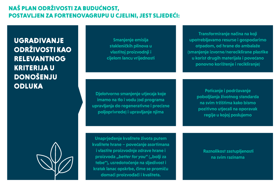 Naš pristup održivosti temelji se na ciljevima koje smo 2021. postavili u području zaštite okoliša, društvene odgovornosti i korporativnog upravljanja tamo gdje smatramo da je to najvažnije za poslovanje Fortenova grupe i gdje Grupa ima najveći utjecaj.